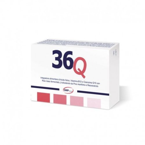 SMP Pharma 36Q è un integratore alimentare formulato per supportare il benessere cardiovascolare e metabolico. Questo prodotto combina una serie di nutrienti essenziali e composti bioattivi, tra cui l'acido folico, la vitamina B12, il coenzima Q10, il riso rosso fermentato, il beta-sitosterolo da pino marittimo e il resveratrolo. La sua composizione è studiata per integrare l'alimentazione in caso di aumentato fabbisogno o ridotto apporto di tali elementi, contribuendo al mantenimento di livelli normali di omocisteina e offrendo un'azione antiossidante.