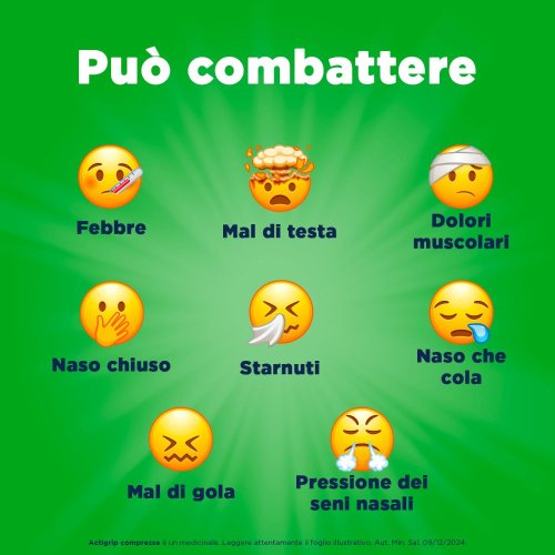 Actigrip è un medicinale indicato per combattere ed alleviare i sintomi tipici di raffreddore ed influenza, essendo in grado di donare rapido sollievo.