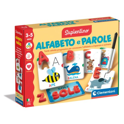 Il Clementoni Sapientino Alfabeto e Parole è un kit educativo progettato per introdurre i bambini dai 3 ai 6 anni al mondo dell'alfabeto in modo interattivo e divertente. Questo strumento didattico, ideato, progettato e sviluppato in Italia, combina l'apprendimento tradizionale con elementi di gioco, rendendo l'esperienza educativa più coinvolgente e stimolante. Il kit include una varietà di materiali pensati per supportare diverse fasi dell'apprendimento, dalla familiarizzazione con le singole lettere alla composizione delle prime parole. Con il Sapientino Alfabeto e Parole, i bambini possono sviluppare le loro capacità di lettura e scrittura in modo naturale e progressivo, acquisendo al contempo sicurezza e autonomia.
