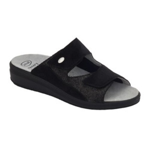 Sandalo studiato apposta per offrire il massimo dell'aggiustabilità ai piedi. L'appropiata allocazione dell'alluce valgo è garantita dalla forma della comoda tomaia elasticizzata. Plantare con tecnologia Memory Cushion che si adatta all'anatomia del piede ed aiuta a ridistribuire la pressione esercitata su tutta la pianta donando una sensazione di leggerezza.