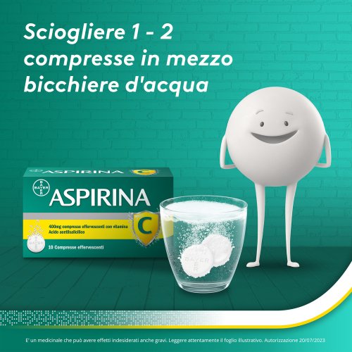 La sua formulazione contiene Vitamina C che ha un effetto positivo sul sistema immunitario, in quanto partecipa al sistema di difesa dell'organismo. L’uso di Aspirina C Compresse Effervescenti è riservato ai soli pazienti adulti. Prima dell'uso leggere attentamente il foglietto illustrativo. Dopo un breve periodo di trattamento senza risultati apprezzabili, consultare il medico.