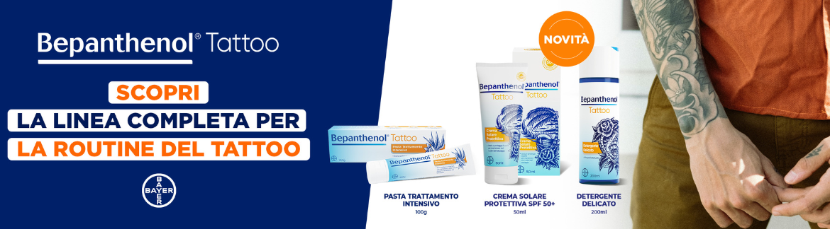 La linea Bepanthenol Tattoo si prende cura dei tuoi tatuaggi idratando la pelle e donando sollievo da prurito ed arrossamenti.