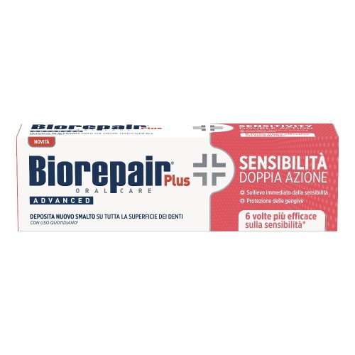 - Sensibilità Doppia Azione è la formula avanzata Biorepair Plus che aiuta a contrastare l'ipersensibilità e a proteggere le gengive.