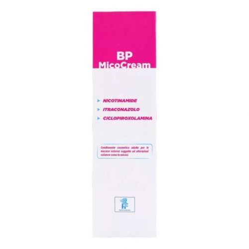 La formulazione della BP MicoCream è arricchita con una combinazione di ingredienti attentamente selezionati per le loro proprietà benefiche. Tra questi, troviamo l'aqua, che funge da base idratante per la crema, e la niacinamide, nota per le sue proprietà anti-infiammatorie e lenitive. L'olio di mandorle dolci (Prunus amygdalus dulcis oil) contribuisce a nutrire e ammorbidire la pelle, mentre il burro di karité (Butyrospermum parkii butter) offre un'idratazione profonda e duratura. L'Olea europaea oil unsaponifiables, derivato dall'olio d'oliva, aiuta a proteggere la pelle dalle aggressioni esterne, mentre il bisabolol, estratto dalla camomilla, lenisce e calma le irritazioni. Il ciclopirox olamine e l'itraconazole sono agenti antifungini che combattono efficacemente le infezioni micotiche. Il tocopheryl acetate, una forma di vitamina E, agisce come antiossidante, proteggendo la pelle dai danni dei radicali liberi. Infine, il lactic acid aiuta a mantenere il pH della pelle equilibrato, favorendo la sua naturale barriera protettiva. Questa combinazione di ingredienti rende la BP MicoCream un prodotto completo e efficace per la cura della pelle.