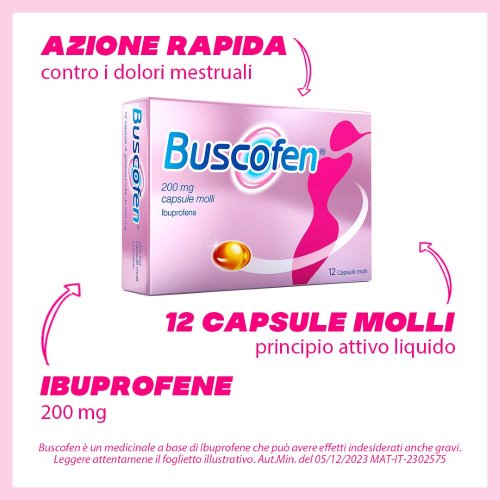 Buscofen è un analgesico, antinfiammatorio e antireumatico non steroideo, in capsule molli, a base di ibuprofene, studiato per il trattamento di dolori di varia origine e natura, quali dolori mestruali, mal di testa, mal di denti, nevralgie, dolori osteoarticolari e muscolari.