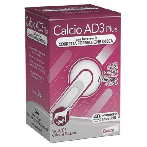 Calcio AD3 Plus Mangime Minerale Sviluppo Cani 40 Compresse