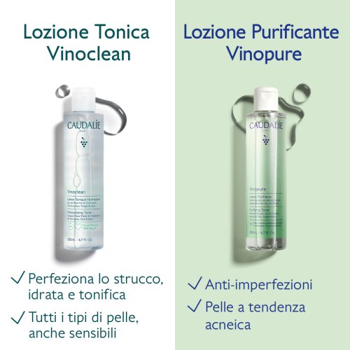 Sì. Utilizzato in quantità limitata, si tratta di alcol di origine naturale dalle proprietà purificanti che favorisce la penetrazione degli attivi. Può causare secchezza se utilizzato puro o troppo di frequente. - Qual è la differenza tra la Lozione Tonica Vinoclean e la Lozione Purificante Vinopure?