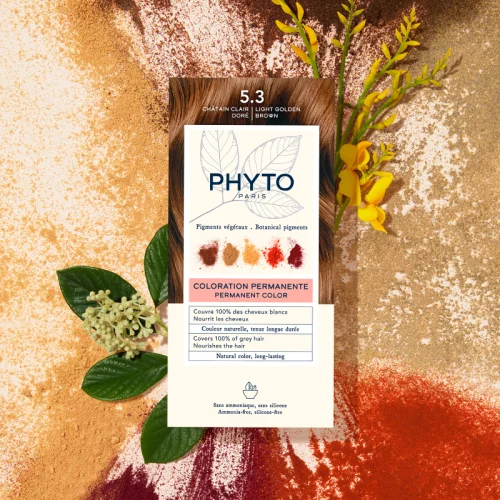 Phyto Phytocolor Colorazione Permanente Tinta Numero 5.3 colora naturalmente la fibra assicurando un risultato di colorazione intensa, naturale e ricca di riflessi luminosi. Con un minimo di sette pigmenti per nuance, rappresenta la prima colorazione permamente ai pigmenti vegetali che non contiene ammoniaca. Copre il 100% dei capelli bianchi a partire dalla prima applicazione e non sbiadisce.