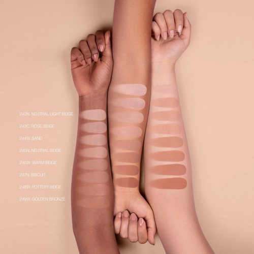 La tonalità Beige chiaro neutro 242N è pensata per adattarsi a una vasta gamma di incarnati, offrendo un risultato naturale e armonioso. La sua formula è arricchita con emulsione siliconica ed oil-free, polveri micronizzate ad effetto mat, cere e filmogeni, che contribuiscono a migliorare la texture della pelle e a prolungare la durata del trucco. Questo fondotinta è ideale per chi cerca un prodotto performante, facile da applicare e in grado di offrire un risultato professionale anche a casa.