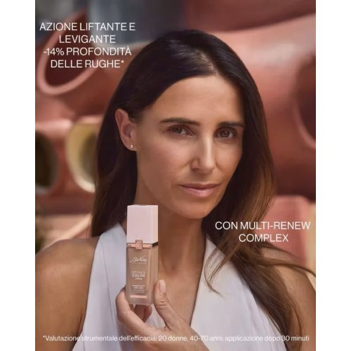 Rivela un incarnato uniforme, sublimato e visibilmente più giovane, minimizzando imperfezioni, piccole rughe e segni di stanchezza. Formula ibrida con Multi-Renew Complex, pool di attivi skincare che contribuiscono a migliorare elasticità, densità e levigatezza cutanea. La speciale tecnologia formulativa crea una perfetta sinergia tra trattamento e make-up per un risultato anti-age e colore impeccabile fino a 12 ore. Texture cremosa e avvolgente, si adatta ad ogni movimento della pelle per un assoluto comfort cutaneo. Coprenza media, modulabile. Testato non comedogeno. SPF15.