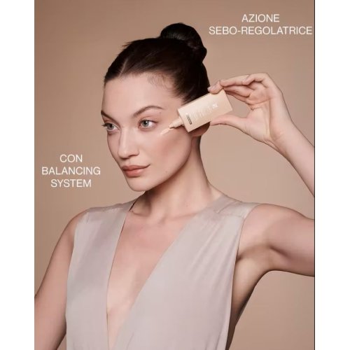 Fondotinta in crema che minimizza pori e imperfezioni per un incarnato uniforme e naturalmente mat fino a 12 ore, testato in condizioni di elevata umidità. L'innovativa formula, con speciali texturizzanti e pool di attivi seboregolatori, balancing system, mantiene il volto levigato e opacizzato.