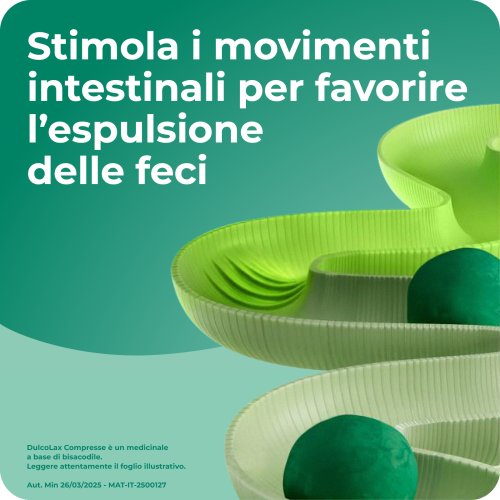 Dulcolax compresse rivestite è un lassativo ad azione rapida che dà sollievo dai sintomi della stitichezza occasionale. Stimola i movimenti intestinali e aiuta il transito e l'espulsione delle feci.