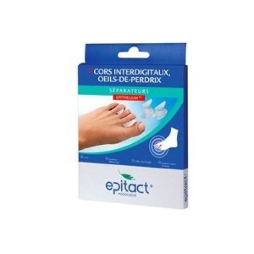 I separatori per dita Epitact sono progettati per offrire un sollievo mirato in caso di calli interdigitali e occhi di pernice. Realizzati in Epithelium, un gel di silicone brevettato, questi dispositivi medici di classe I separano delicatamente le dita del piede, riducendo la pressione e lo sfregamento che causano fastidio e dolore. La loro composizione in gel di silicone medicale assicura comfort e adattabilità, rendendoli adatti all'uso quotidiano.