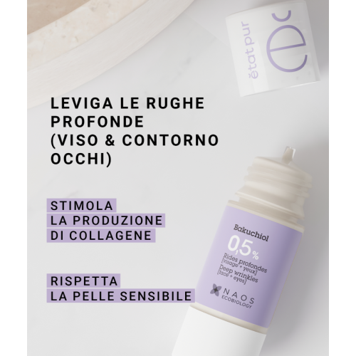 Etat Pur Bakuchiol 0,5% rappresenta un'alternativa naturale e vegetale al Retinolo, tollerata anche dalla pelle più sensibile e delicata.