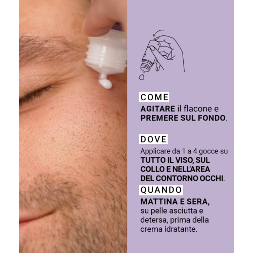 Applicare da 1 a 4 gocce di prodotto sulla zona del contorno occhi e\o su tutto il viso e collo.