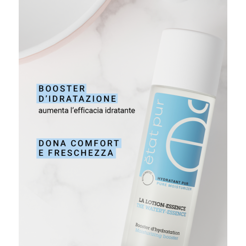 Etat Pur Essenza Idratante è la lozione ultra-fresca, dalla texture acquosa, capace di idratare e lenire all'istante viso e contorno occhi.