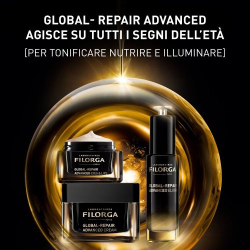 Filorga Global Repair Eyes & Lips è il trattamento assoluto, multi-attivo concentrato, specifico per il contorno occhi e il contorno labbra segnati, ispirato alle procedure di medicina estetica per un effetto anti-age intensivo e visibile.