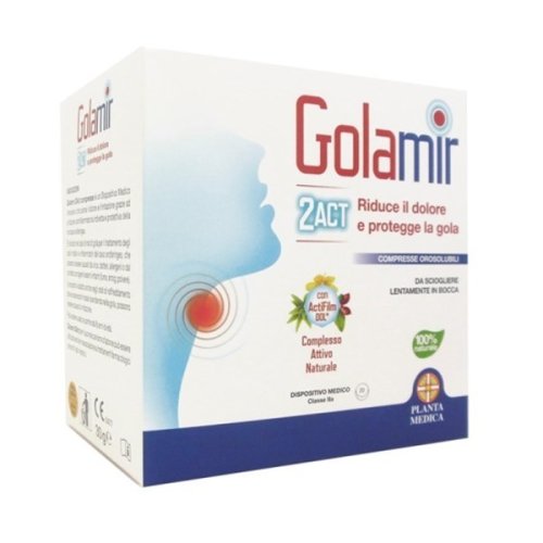 Golamir 2Act calma il dolore e l'irritazione proteggendola mucosa orofaringea.