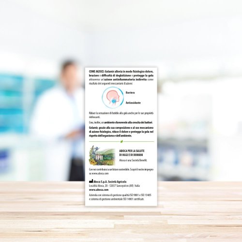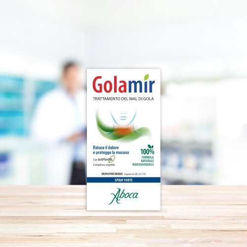 Golamir 2Act calma il dolore e l'irritazione proteggendola mucosa orofaringea.