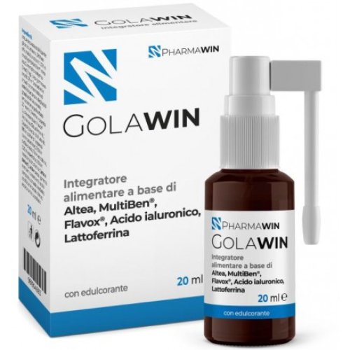 Pharmawin Golawin Spray è un integratore alimentare formulato per supportare la funzionalità delle mucose dell'apparato respiratorio e promuovere il benessere della gola. La sua composizione include ingredienti selezionati come altea, multiben, flavox, acido ialuronico e lattoferrina, noti per le loro proprietà benefiche. Questo prodotto è ideale per chi cerca un supporto naturale per la gola, soprattutto durante i cambi di stagione o in presenza di irritazioni.