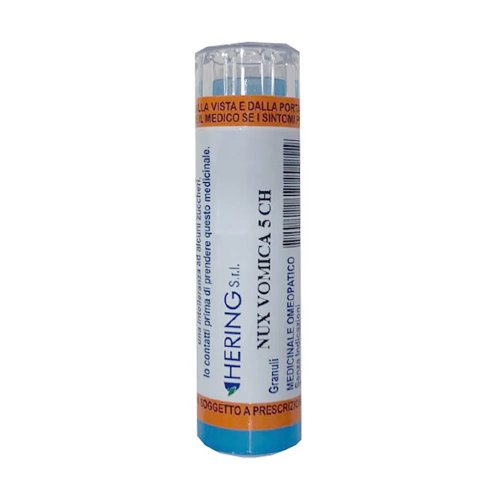Nux Vomica 5CH Granuli Omeopatici è un medicinale omeopatico prodotto da HERING, presentato in un formato di granuli multidose da 4g. Rientra nella categoria dell'omeopatia ed è formulato secondo le diluizioni hahnemanniane centesimali. Questo prodotto è caratterizzato dall'assenza di indicazioni terapeutiche approvate, il che significa che il suo utilizzo si basa sui principi dell'omeopatia e sulla tradizione in questo campo piuttosto che su evidenze scientifiche convenzionali. I granuli sono contenuti in un tubo multidose, facilitandone l'assunzione e la conservazione. La denominazione 5CH si riferisce al livello di diluizione del principio attivo secondo la scala Centesimale Hahnemanniana, un processo che prevede diluizioni seriali e dinamizzazioni (agitazioni) del rimedio originale.
