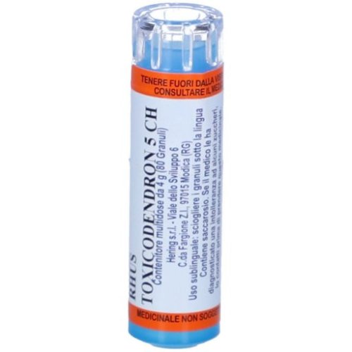 L'impiego di Rhus Toxicodendron in omeopatia è radicato nella pratica clinica e si basa sull'osservazione degli effetti della sostanza sul corpo umano. In particolare, questa preparazione è spesso associata al supporto in caso di disturbi che coinvolgono il sistema muscolo-scheletrico, manifestazioni cutanee e altre condizioni specifiche. La diluizione 5CH indica il livello di diluizione e dinamizzazione del principio attivo, un aspetto fondamentale nella preparazione dei rimedi omeopatici. Hering, con la sua lunga esperienza nella produzione di medicinali omeopatici, assicura che ogni fase del processo produttivo sia eseguita nel rispetto delle normative e degli standard di qualità, garantendo un prodotto sicuro e affidabile.