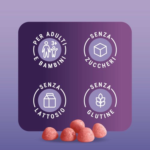 Integratore alimentare con edulcorante a base di inulina, fermenti lattici vivi, quali Bifidobacterium breve, Bifidobacterium lactis e spore di Bacillus coagulans, che contribuiscono all'equilibrio della flora intestinale. La formulazione è arricchita con vitamina B6 e niacina che favoriscono il normale metabolismo energetico. Inoltre, la vitamina B6, la vitamina C e lo zinco contribuiscono alla normale funzione del sistema immunitario.