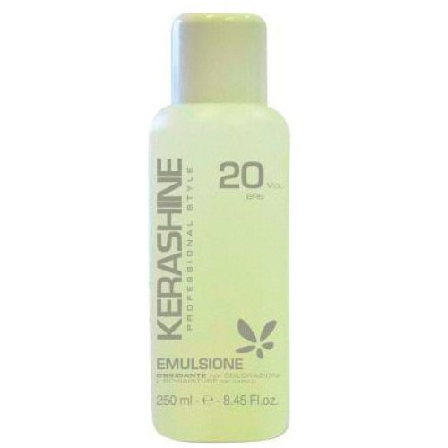 L'Emulsione Ossidante 20 Volumi di Kerashine è un prodotto professionale per la colorazione e la schiaritura dei capelli. Contenuto: 250 ml. Texture: emulsione. Proprietà distintive: contiene 20 volumi, ideale per l'uso con tinture ad ossidazione o con polveri/creme decoloranti per capelli.