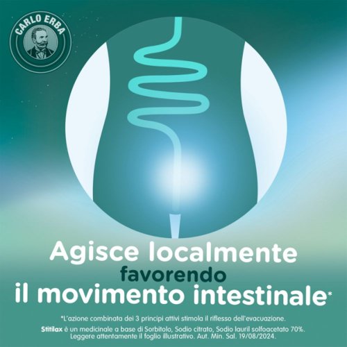 Avvertenze Se i sintomi persistono per più di qualche giorno, consultare un medico ed evitare l’uso prolungato. Il trattamento medico della costipazione è solo una misura aggiuntiva rispetto ad uno stile di vita sano: • elevata assunzione di liquidi e fibre vegetali; • raccomandazioni di attività fisica e allenamento intestinale. Combinazioni non raccomandate Questo medicinale non deve essere usato in combinazione con le resine a scambio cationico di calcio o di sodio polistirene sulfonato (via orale e rettale): rischio di necrosi del colon, potenzialmente letale. Precauzioni d’impiego: Si raccomanda di evitare l’uso di questo medicinale in caso di riacutizzazioni di emorroidi, ragadi anali o rettocolite emorragica. Prestare estrema cautela in caso di uso in pazienti affetti da patologie infiammatorie o ulcerative dell’intestino crasso o da patologie gastrointestinali acute.