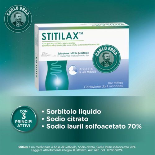 Stitilax - Soluzione rettale per il trattamento della stitichezza occasionale - 4 flaconi monodose da 5 ml