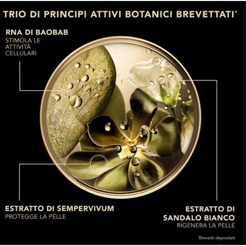 In particolare, l'estratto di sandalo bianco rigenera la pelle, l'estratto di sempervivum protegge la pelle e RNA di Baobad stimola le attività cellulari cutanee. -