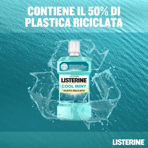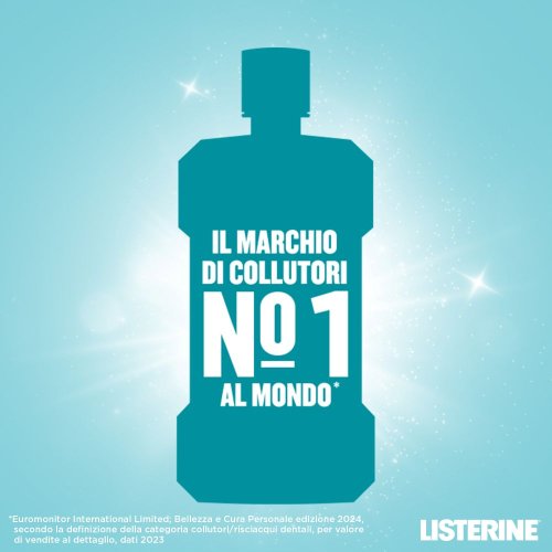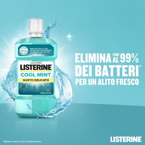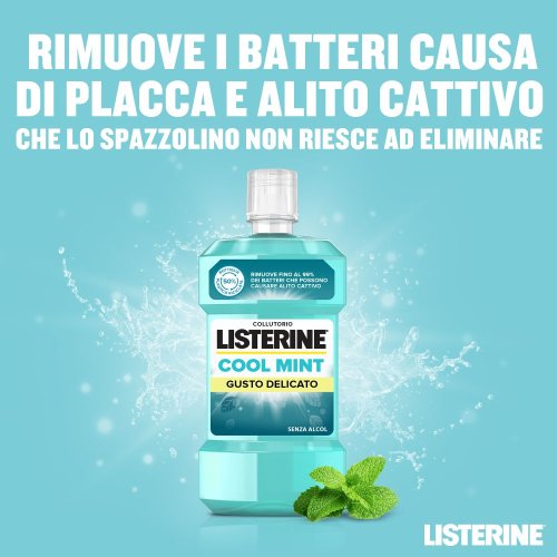 Listerine Coolmint Collutorio Zero Alcol, utilizzato 2 volte al giorno, aiuta a rimuovere fino al 99% dei batteri che causano la formazione della placca tra i denti ed a rinfrescare l'alito a lungo.