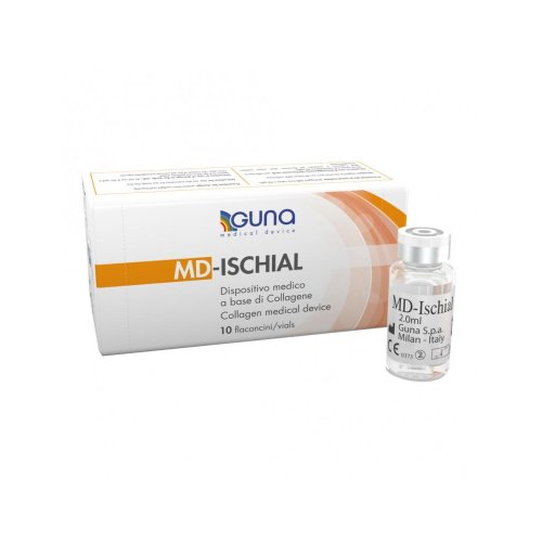 Md-Ischial Italia di GUNA è una soluzione iniettabile progettata per supportare la mobilità e il benessere degli arti inferiori. Questo prodotto è formulato con collagene di origine suina e altri componenti che contribuiscono a migliorare la funzione muscolare e articolare. I flaconcini contengono una soluzione sterile pronta per l'uso, pensata per essere somministrata attraverso diverse vie, tra cui iniezioni periarticolari, intra-articolari, intramuscolari e intradermiche. Il prodotto è ideale per chi cerca un supporto nella gestione del dolore e nella ripresa della funzionalità degli arti inferiori.