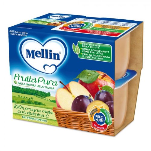 Mellin Frutta Pura Prugna Mela 100% - 4 Vasetti da 100g