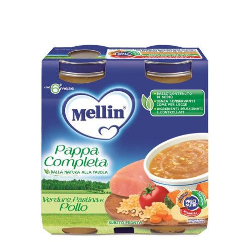 Mellin Pappa Completa Verdure, Pastina e Vitello è pensata per supportare la crescita del tuo bambino a partire dal 6° mese, salvo diversa indicazione del pediatra. Questa pappa completa offre un'alimentazione bilanciata e nutriente, combinando sapientemente verdure selezionate, pastina e carne di vitello in una consistenza cremosa e omogenea.
