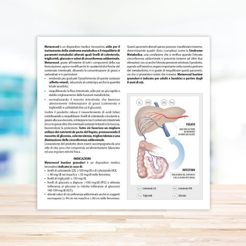 Metarecod è un dispositivo medico utile per il trattamento della sindrome metabolica e per il riequilibrio di paramentri metabolici alterati come colesterolo, trigliceridi e valori di circonferenza addominale.