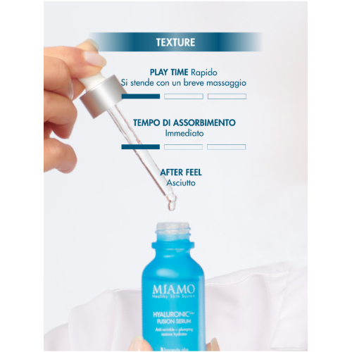 Miamo Hyaluron14+ Fusion Serum dona una pelle rimpolpata ed idratante, grazie alla presenza di: