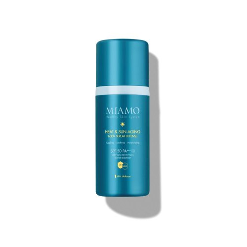 Miamo Heat&Sun Aging Body Serum Defence SPF50+ è il nuovissimo siero solare adatto per viso e corpo, con fattore di protezione molto alto, ad ampio spettro, resistente all'acqua.