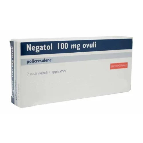 Effetti indesideratiLa valutazione degli effetti indesiderati è basata sulle seguenti frequenze: Molto comune: più di 1 su 10 pazienti trattati Comune: meno di 1 su 10, ma più di 1 su 100 pazienti trattati Non comune: meno di 1 su 100, ma più di 1 su 1.000 pazienti trattati Raro: meno di 1 su 1.000, ma più di 1 su 10.000 pazienti trattati Molto raro: meno di 1 su 10.000 pazienti trattati, incluse segnalazioni isolate. Molto comune: secchezza della vagina Comune: perdita di frammenti di membrana mucosa In aggiunta, i seguenti effetti indesiderati sono stati riferiti per l’uso di preparazioni contenenti policresulene: orticaria, reazioni allergiche sistemiche (per esempio angioedema, orticaria generalizzata) fino all’anafilassi, candidiasi vaginale, prurito vulvare, perdita di frammenti di membrana mucosa, fastidio, secchezza della vagina, sensazione di corpo estraneo presente in vagina. Se insorge una grave irritazione locale, Negatol deve essere interrotto e deve essere considerata una terapia antibatterica alternativa. Segnalazione delle reazioni avverse sospette La segnalazione delle reazioni avverse sospette che si verificano dopo l’autorizzazione del medicinale è importante, in quanto permette un monitoraggio continuo del rapporto beneficio/rischio del medicinale. Agli operatori sanitari è richiesto di segnalare qualsiasi reazione avversa sospetta tramite il sistema nazionale di segnalazione all’indirizzo www.agenziafarmaco.gov.it/it/responsabili.
