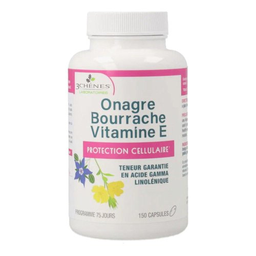 Olio di oenothera 500 mg; olio di borragine 500 mg; acido gamma lonolenico totale 150 mg; vitamina E 6,7 mg (55,8% RDA).