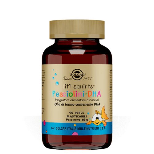 Solgar Pesciolini DHA è un integratore alimentare formulato per supportare il benessere visivo e cerebrale, particolarmente adatto per i bambini che non consumano regolarmente pesce e per le donne durante la gravidanza e l'allattamento.