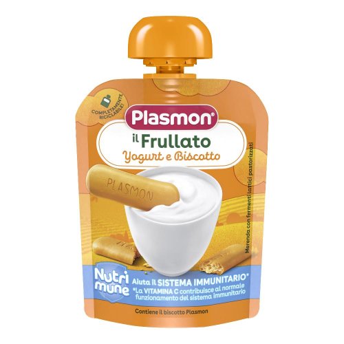Yogurt (latte) (60%), acqua, biscotto plasmon (6%) (farina di frumento,zucchero, oli vegetali (palma certificato sostenibile, oliva), latte scremato in polvere, amido di frumento.