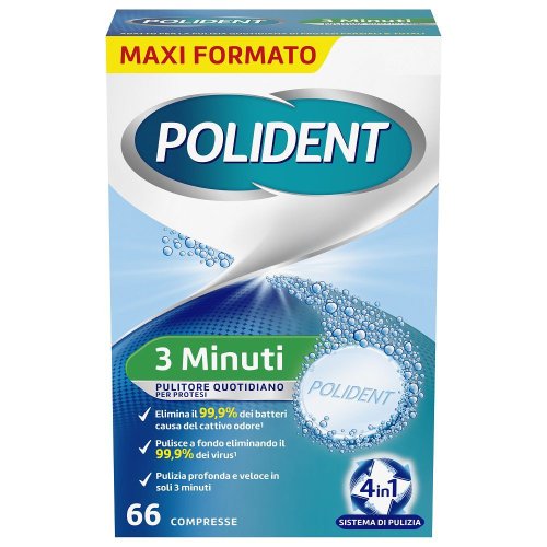 Polident 3 Minuti Pulitore Protesi Dentale Quotidiano Antibatterico - 66 Compresse