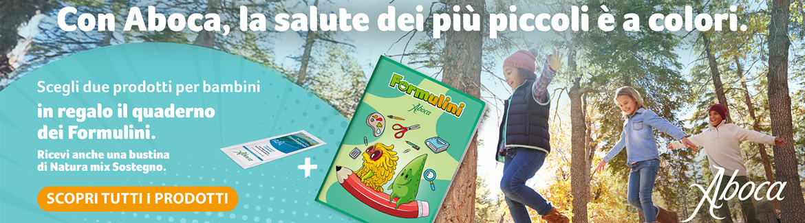 Aboca offre formulazioni naturali, sicure anche per i più piccoli: da oggi, solo su Farmacia Guacci, acquistando due prodotti della linea ricevi subito in regalo il quaderno dei Formulini + una bustina di Natura Mix Sostegno!