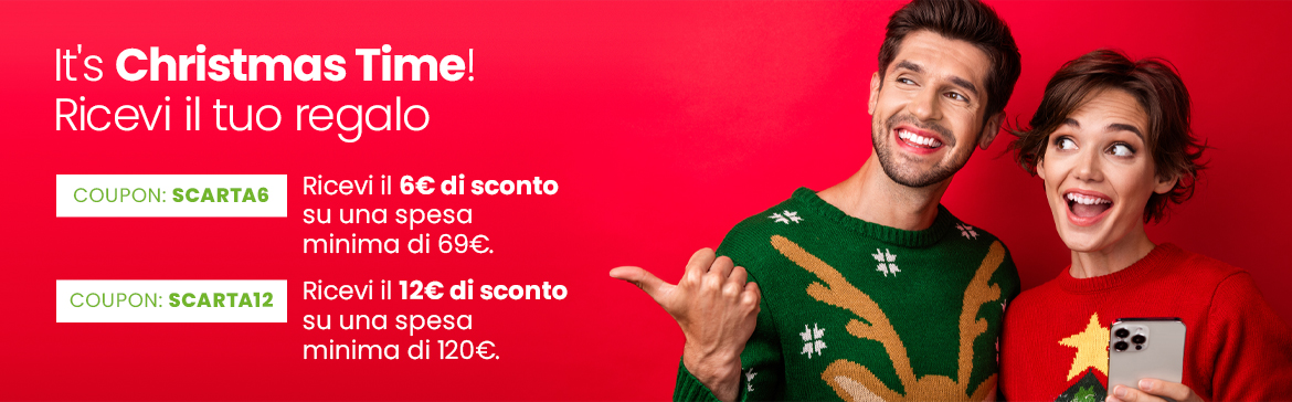 Inserisci il codice coupon SCARTA12 e ricevi subito un extra sconto di 12€ su una spesa minima di 120€.