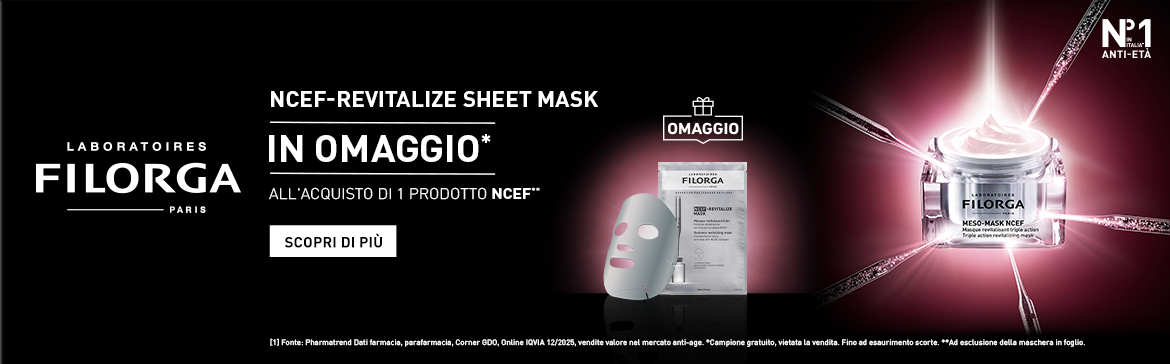 Approfitta dell'esclusiva promozione su Farmacia Guacci: acquista un prodotto della linea Filorga NCEF e ricevi in omaggio NCEF-Revitalize Sheet Mask 15ml.