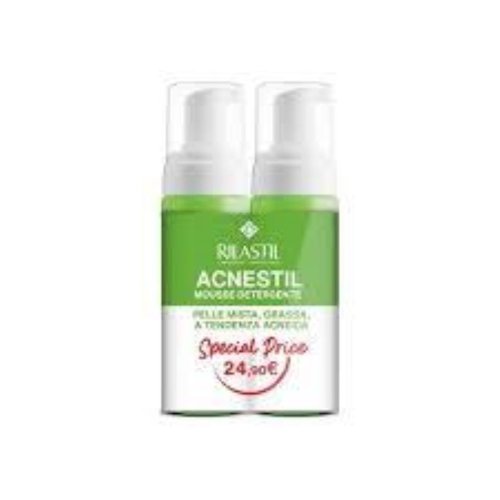 Rilastil Acnestil Mousse - Detergente viso per pelle grassa e a tendenza acneica - Confezione speciale con 2 pezzi da 165 ml ciascuno