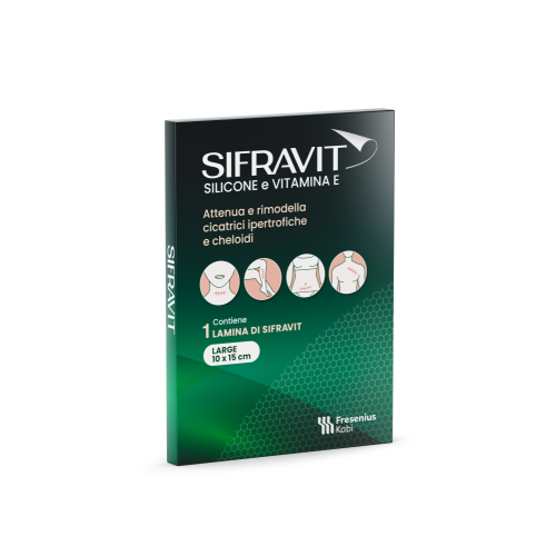 Contiene 1 lamina di Sifravit in silicone e vitamina E, large 10x15 cm.